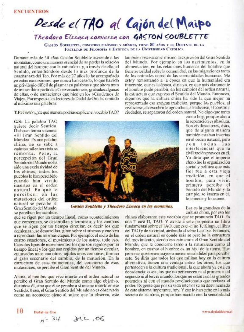 Desde el Tao al Cajón del Maipo (entrevista) [artículo] Theodoro Elssaca.