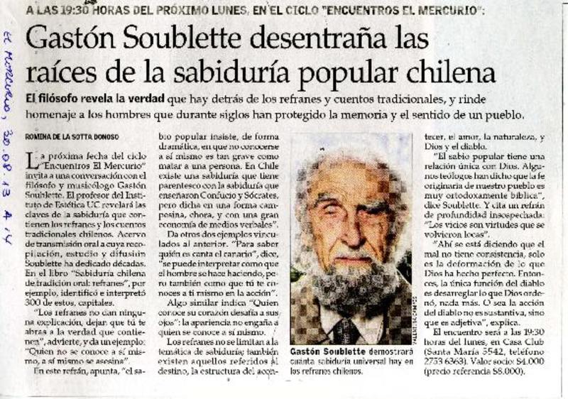 Gastón Soublette desentraña las raíces de la sabiduría popular chilena [artículo] Romina de la Sotta Donoso.