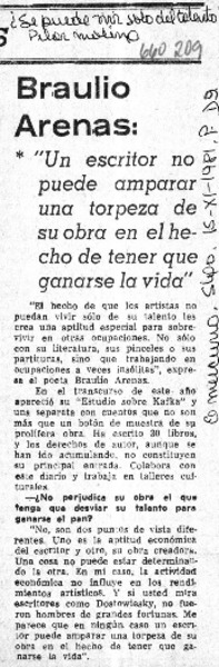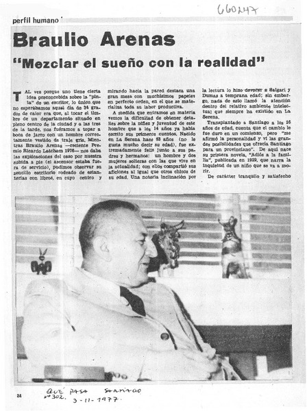 Braulio Arenas "mezclar el sueño con la realidad" [entrevista] [artículo] : Magdalena Cruzat.