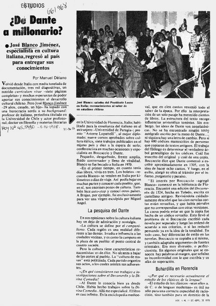 ¿De Dante a millonario? [artículo] Manuel Délano.