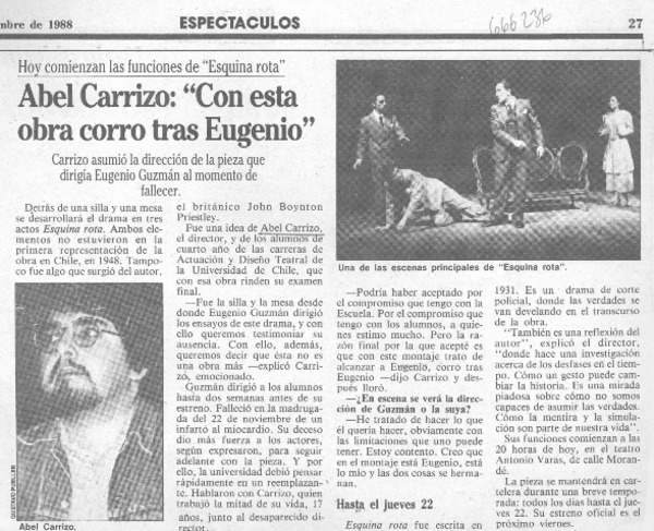 Abel Carrizo, "con esta obra corro tras Eugenio" : [artículo].