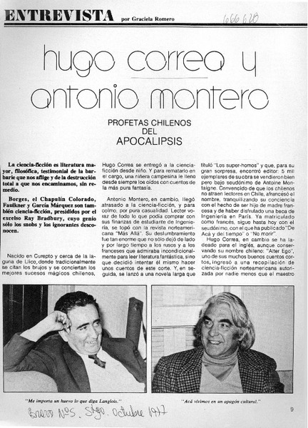 Autores chilenos - Brutas - Autores franceses - entrevistas - Radrigán, Juan - Montserrat, Ricardo