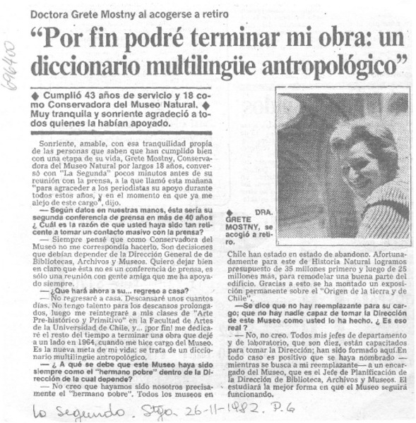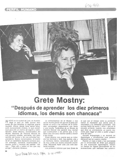 entrevistas - Fernández, María Isabel - Mostny, Grete - Autoras chilenas