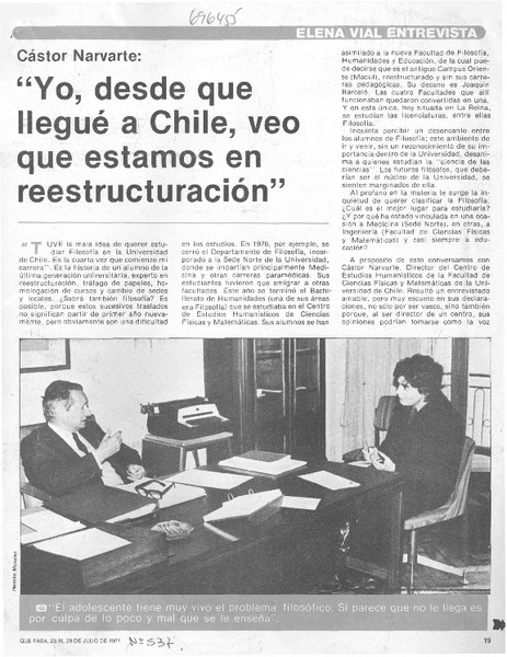 "Yo, desde que llegué a Chile, veo que estamos en reestructuración" : [Entrevista] [artículo] Elena Vial.