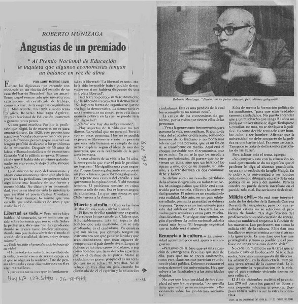 Angustias de un premiado : [entrevista] [artículo] Jaime Moreno Laval.