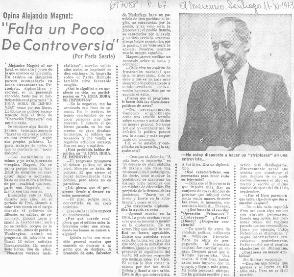 "Falta un poco de controversia" : [entrevista] [artículo] Perla Searle.