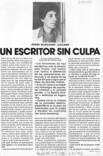 Un escritor sin culpa : [entrevista] [artículo] Elga Pérez-Laborde.