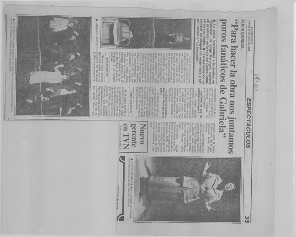 "Para hacer la obra nos juntamos puros fanáticos de Gabriela" : [entrevista] [artículo]