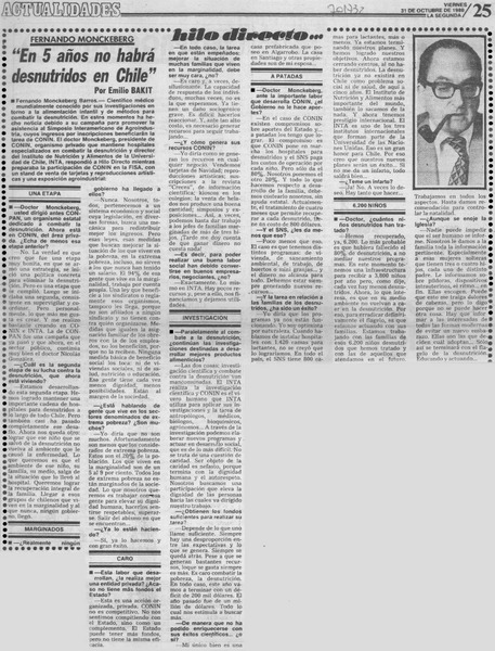 "En 5 años no habrá desnutridos en Chile" : [entrevista] [artículo] Emilio Bakit.