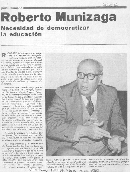 Autores chilenos - entrevistas - Munizaga Aguirre, Roberto