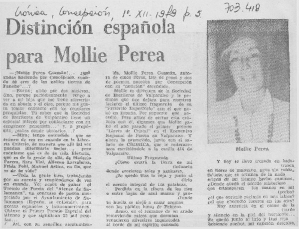 Distinción española para Mollie Perea : [entrevista] [artículo]
