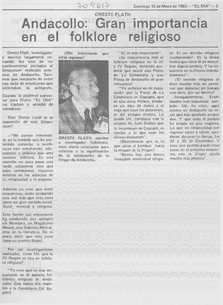 Andacollo: gran importancia en el folklore religioso: [entrevista] [artículo]