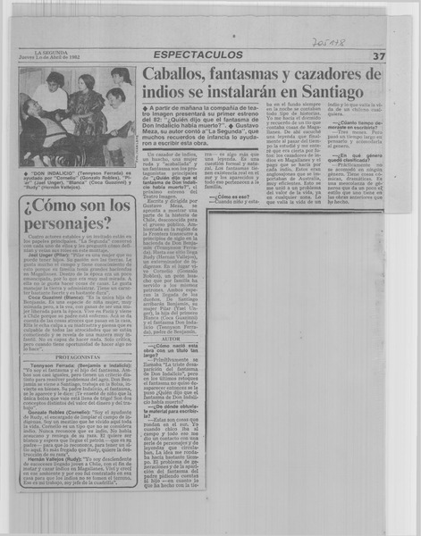 Caballos, fantasmas y cazadores de indios se instalarán en Santiago : [entrevista] [artículo]