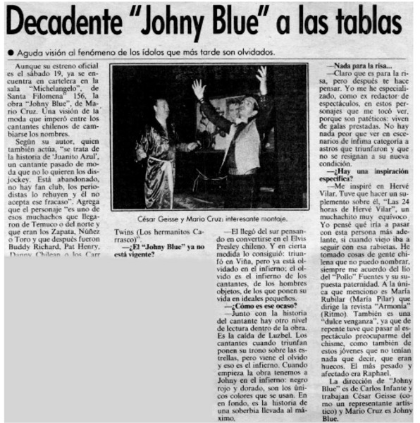 Decadente "Johny Blue" a las tablas : [entrevistas] [artículo]
