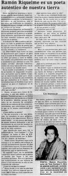 Ramón Riquelme es un poeta auténtico de nuestra tierra : [entrevista] [artículo]
