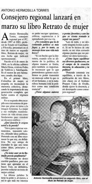 Consejero regional lanzará en marzo su libro Retrato de mujer [artículo].