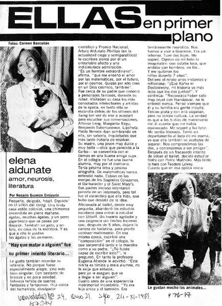 Elena Aldunate amor, neurosis, literatura [artículo] Rosario Guzmán Errázuriz.