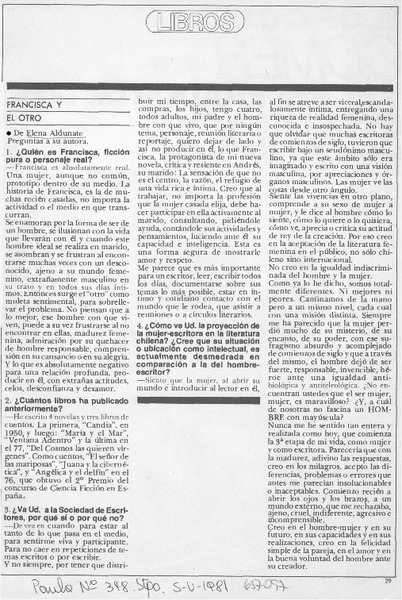 Autores chilenos - entrevistas - Aldunate, María Elena - Silva Sánchez, Fernando