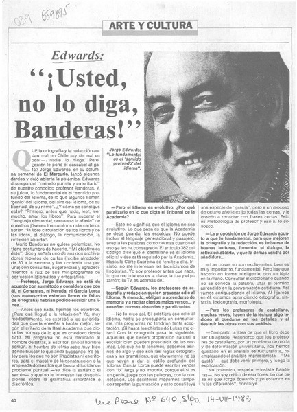 Edwards, ¡usted, no lo diga!, Banderas [artículo] Consuelo Larraín.