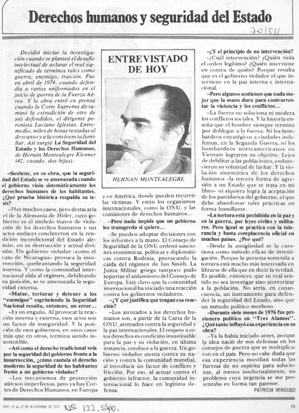 Derechos humanos y seguridad del Estado : [entrevista] [artículo] Patricia Verdugo.