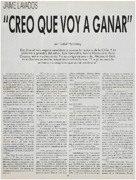 "Creo que voy a ganar" : [artículo] Isabel Hohlberg.