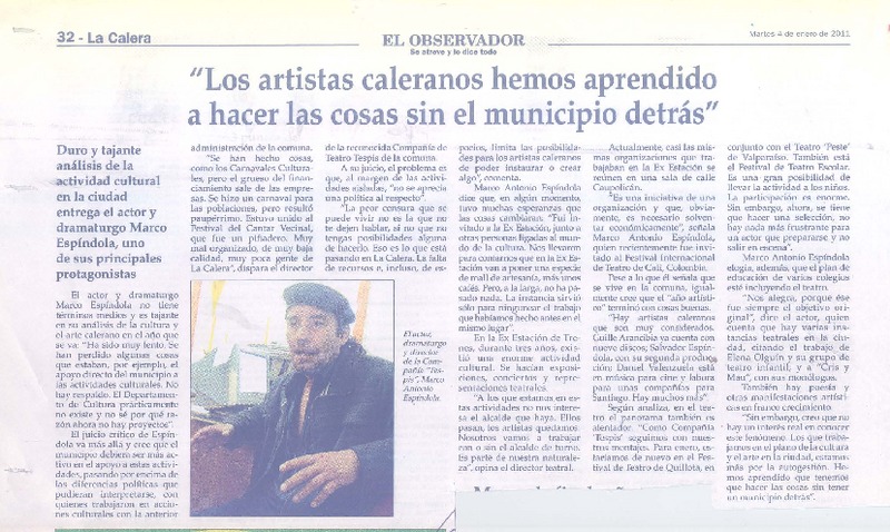 "Los artistas caleranos hemos aprendido a hacer cosas sin el municipio detrás" (entrevista) [artículo].