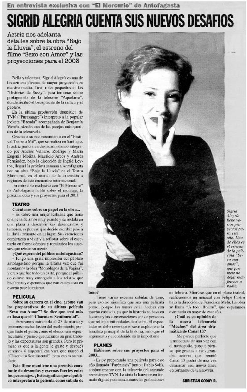 Sigrid alegría cuenta sus nuevos desafíos [artículo] Christian Godoy R.
