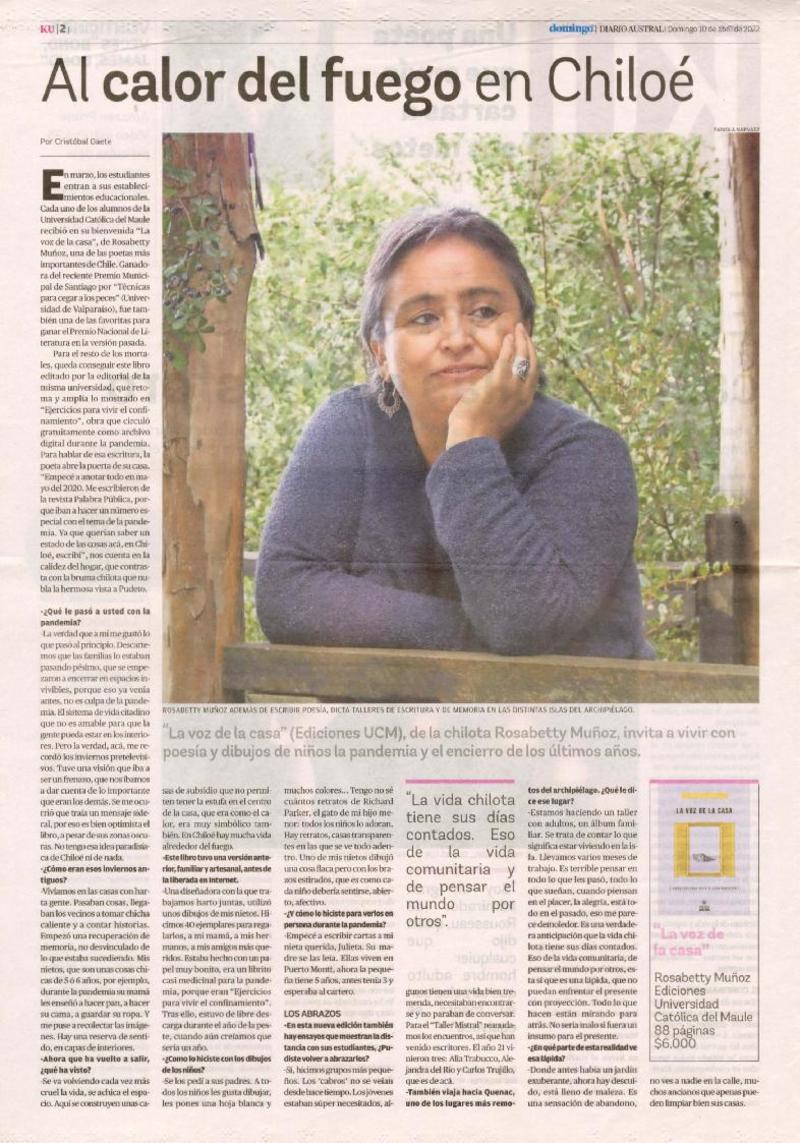 Autoras chilenas - Muñoz, Rosabetty - entrevistas - "La voz de la casa"