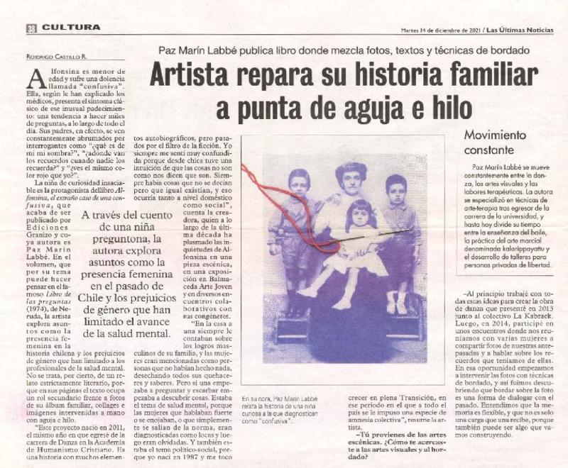 Artista repara su historia familiar a punta de aguja e hilo [artículo] Rodrigo Castillo R.