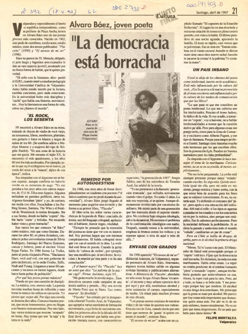 "La democracia está borracha" [entrevista] [artículo] : Felipe Montalva.
