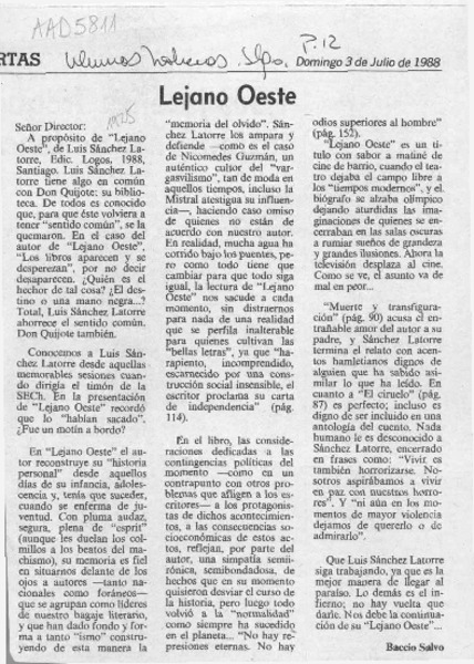 El "Lejano Oeste", de Sánchez Latorre [artículo] Emilio Oviedo.
