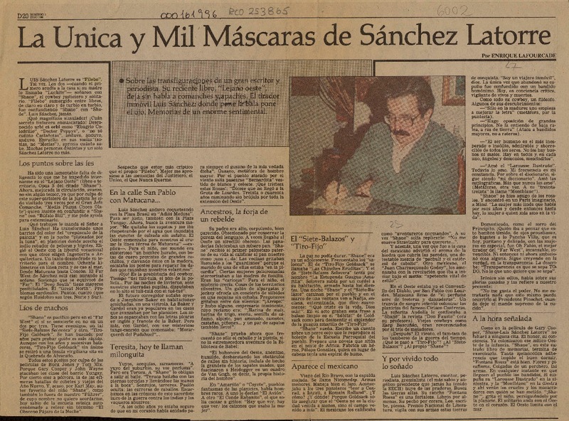 La única y mil máscaras de Sánchez Latorre [artículo] Enrique Lafourcade.