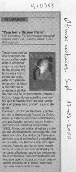 Autores chilenos - Carrasco Muñoz, Iván - Sepúlveda, Fidel - Cuentos campesinos - Para leer a Nicanor Parra