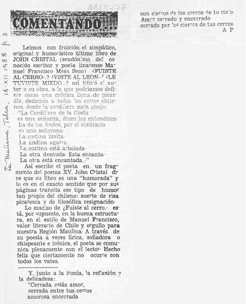 Adiós, Manuel Francisco [artículo] Amparo Pozo.