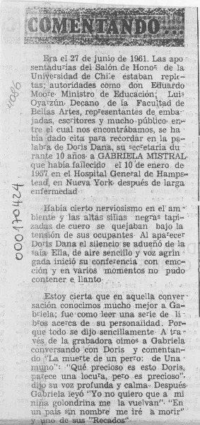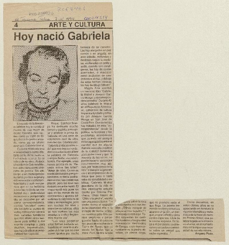 Hoy nació Gabriela [artículo] Amparo Pozo.