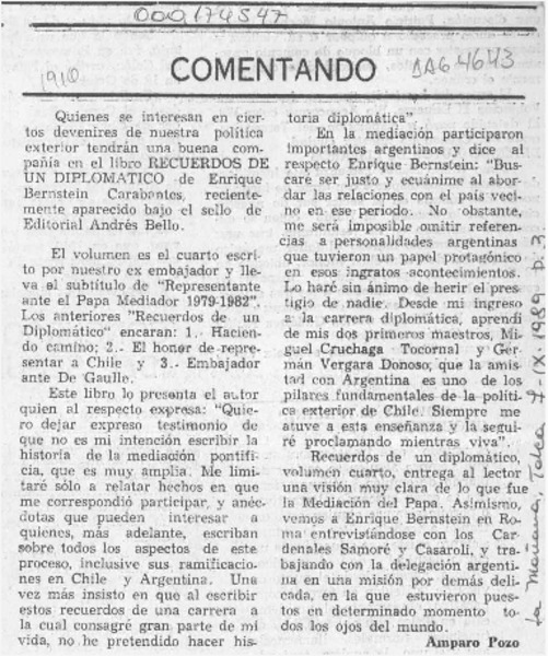 Bernstein Carabantes, Enrique - Recuerdos de un diplomático