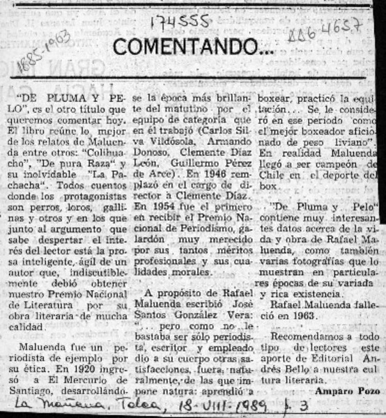 MALUENDA, RAFAEL - DE PLUMA Y PELO