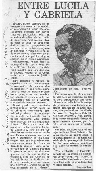 Entre Lucila y Gabriela [artículo] Amparo Pozo.
