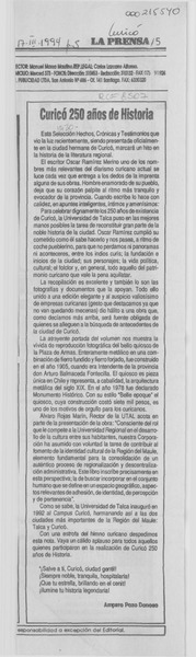 Curicó 250, años de historia [artículo] Amparo Pozo Donoso.
