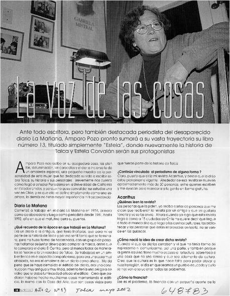 Con Amparo Pozo Donoso [artículo] Javier Moreno T.