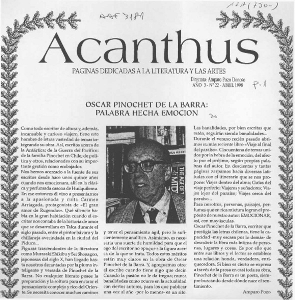 Oscar Pinochet de la Barra: palabra hecha emoción [artículo] Amparo Pozo.