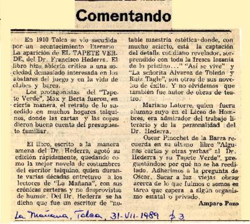 Oscar Ramírez, enamorado de Curicó [artículo] Amparo Pozo.