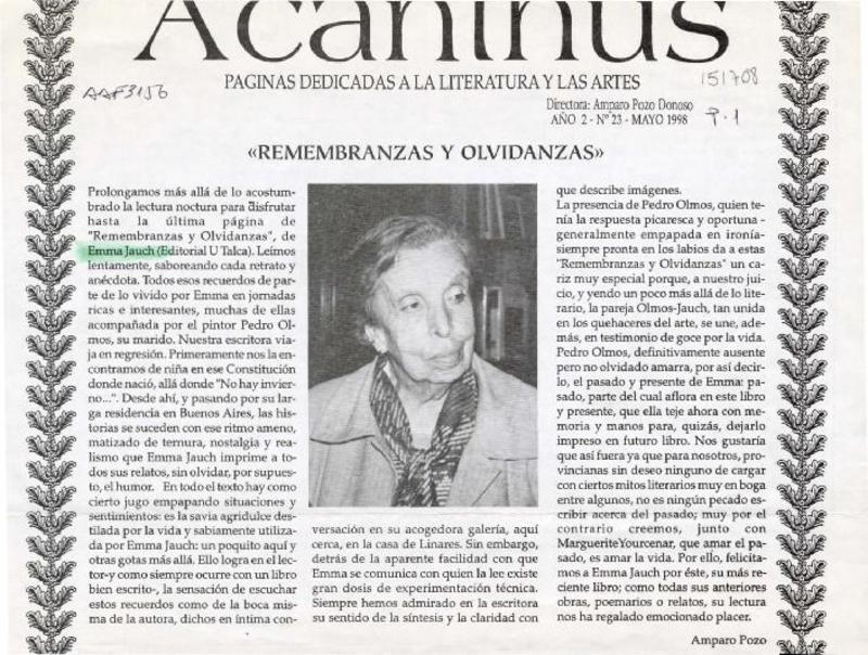 Remembranzas y olvidanzas [artículo] Amparo Pozo.