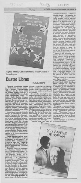 Cuatro libros [artículo] Pedro Crespo.
