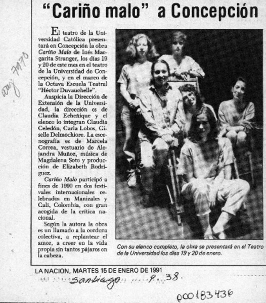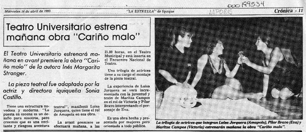 Obra "Cariño malo" presenta hoy teatro de Ucé en Valdivia [artículo].