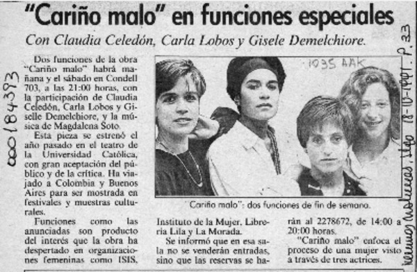 "Cariño malo", primera obra realizada sólo por mujeres [artículo].