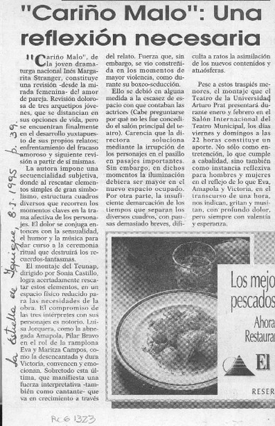 "Cariño malo" construye una experiencia teatral tonificante [artículo] Italo Passalacqua C.