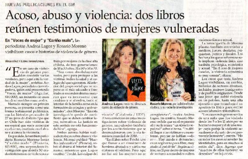 Acoso, abuso y violencia : dos libros reúnen testimonios de mujeres vulneradas [artículo] Iñigo Díaz.