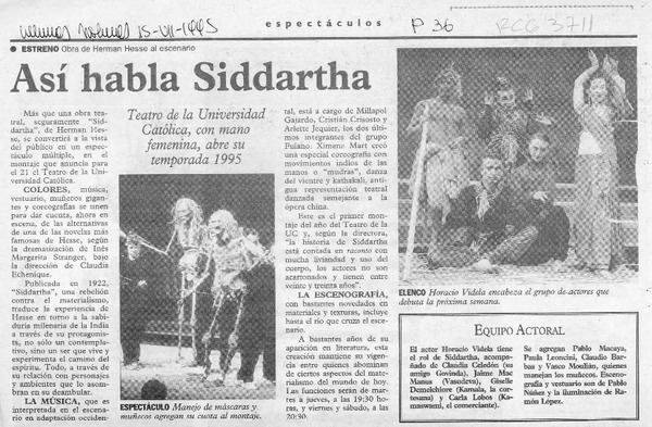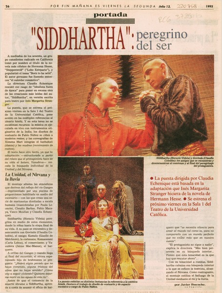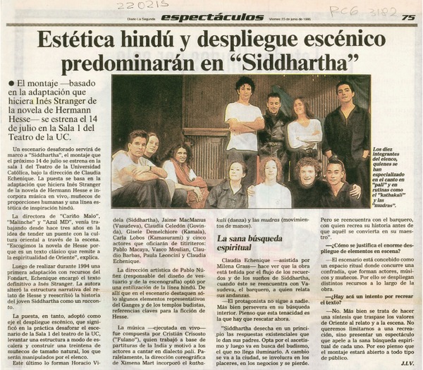 Estética hindú y depliegue escénico predominarán en "Siddhartha" [artículo] J. L. V.