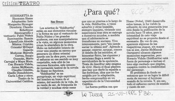 "Siddhartha" [artículo] Pedro Labra Herrera.